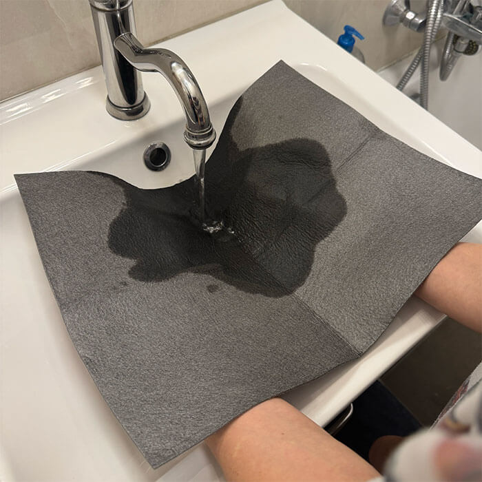 När du blötlägger den aktiveras de speciella mikrofibrerna och lockar till sig smuts som en magnet, utan att du behöver använda något tvättmedel.